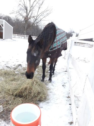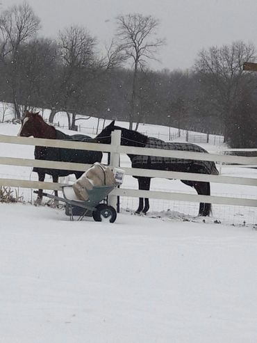 Bentley is starting to make friends with the other horses. We have put him in with the herd because we don´t want them to slip and fall in case they start running around.