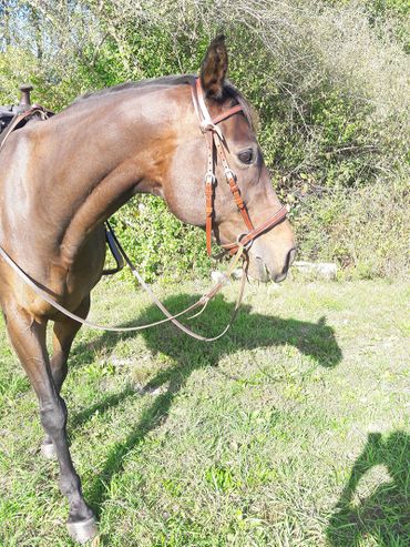 He has a very smooth trot and canter. He listens to cues and his mouth is very soft and sensitive.