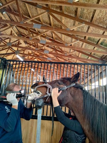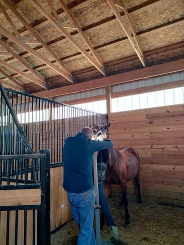 We did a full wellness and lameness exam and everything looked pretty good. She showed some soreness in her right front fetlock so we did some x-rays but nothing really to see that would raise concern. We also did x-rays on her stomach and it showed she has some sand which we have been treating with Sand Clear.We didn't do x-rays on her knees. Dr. Johnson said she's probably got some fluid in there because it looks like she used to hit her knees on something a lot so we are rubbing some DMSO on it to relieve some of the swelling.Billie Jean also got a dental float. After examining her teeth closer it turns out she is more like 18-20 years old.
