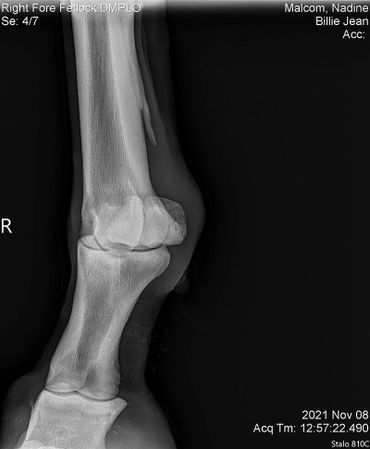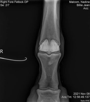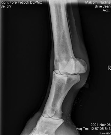 BJ also had hr knees, fetlock and coffin joint x-rayed on July 7, 2022. Her vet bill was $185.
