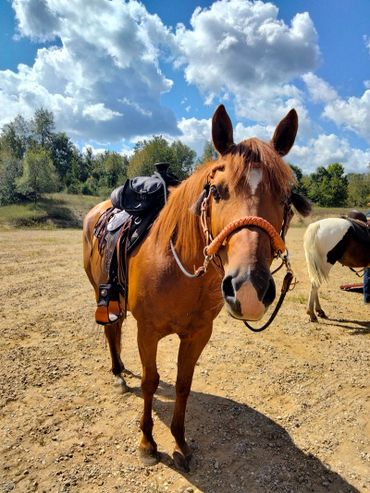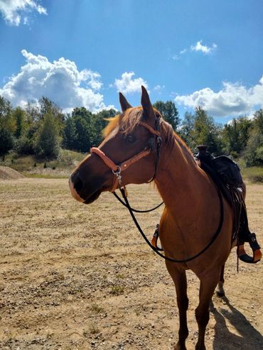 At our last vet appointment on 09/16/2021 we had some x-rays taken of his leg. He is 100% good to go. Jasper shows a little stud behavior around mares in the herd but not on rides. I know that whoever will adopt him is going to get a great horse. I hate to see him go but he is so ready. You can now apply to adopt him. Please feel free to contact us with any questions.