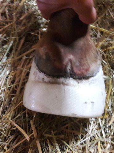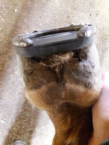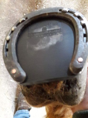 Pads will be placed between the hoof and shoe to elevate her shoulder again so we can continue her training.