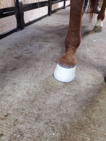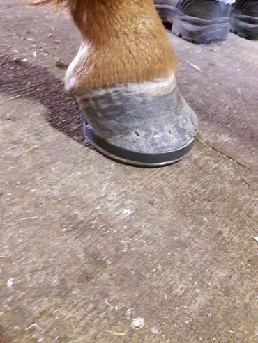 On April 10th, the vet was finally able to do that. She now has corrective horse shoes in the front.
