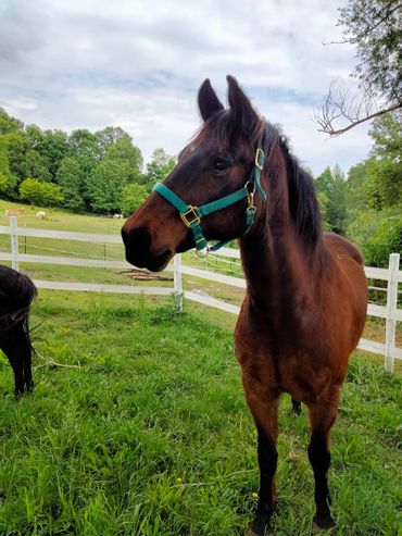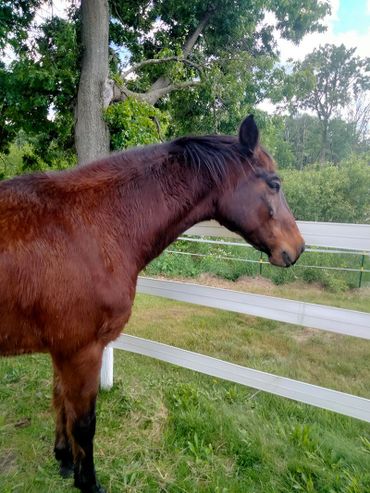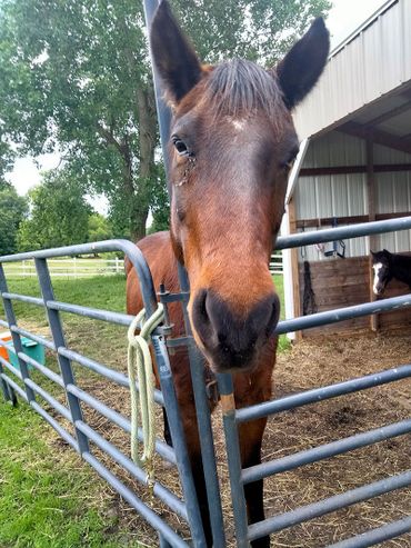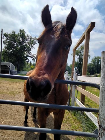 Otherwise he settled in nicely. Merlin is very outgoing and the first one to greet you at the gate. I had to clip his coat back in June because of the temperatures. He's got a beautiful trot and I'm looking forward to working with him. I just haven't done it yet because I want his body to get the chance to get used to the meds. At some point I have to take him to MSU to see an opthamologist.