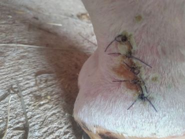 Red's recovery is going great and she is walking well. We took some pictures of the incisions.