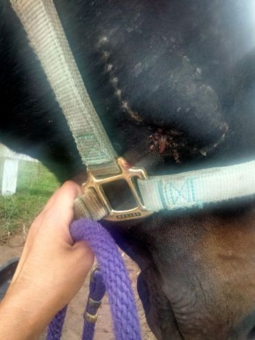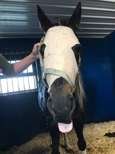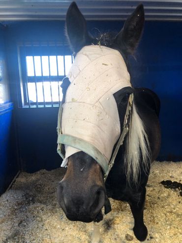 They left a corner of the surgery site open so drainage or small particles can come out without causing another abscess. What caused this skull fracture is a big question mark in our heads, too.However she is fully blind. It can't be determined if she got kicked or hit her head. There is a possibility her left sinus/ nostril might start smelling again. For now, her sinuses were left alone. The next few days will show if we have to take further actions. There is a chance Stella might end up with a crooked nose caused by facial nerve damage. However this is not going to cause her any problems, it's just a small blemish which makes her even more special.