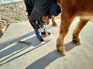 Yesterday we took Tiny to the clinic. Hopefully they will be able to stretch down his tendons in his right hind leg so he can walk normally and explore the world as a trail horse in the future.