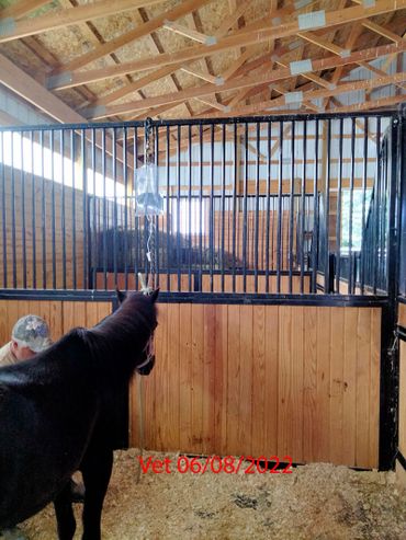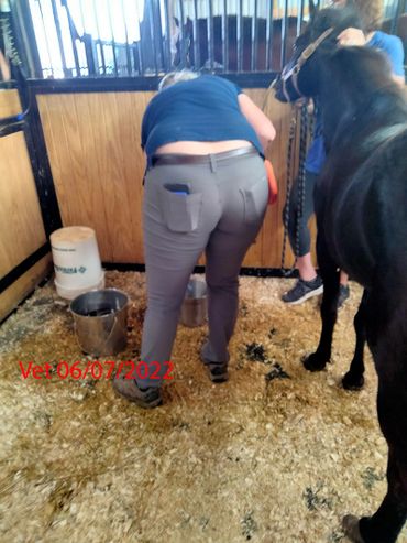 He got vaccinated, his Coggings pulled, SAA pulled and we had them take a fecal egg count and he got microchipped.