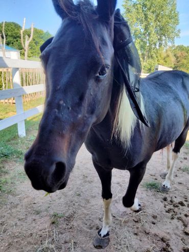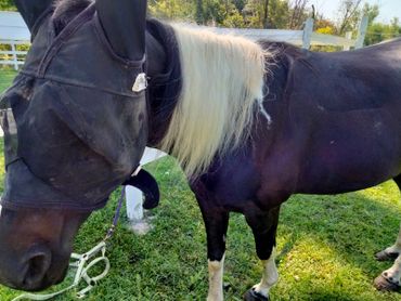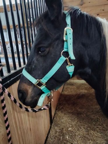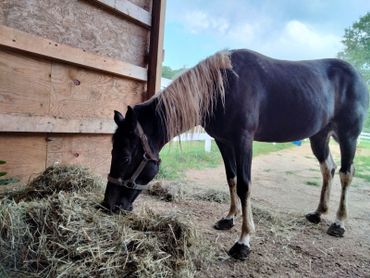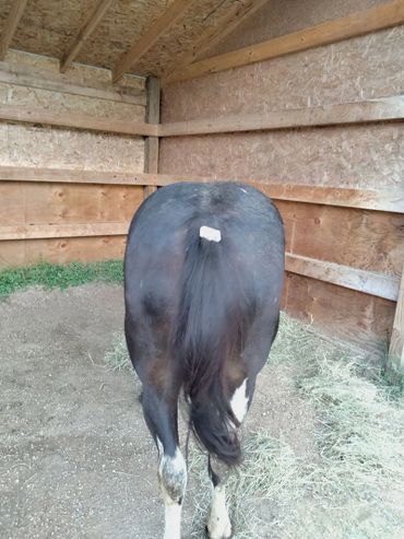 She's got a little belly going and her coat is shiny. Little "Miss Sweetheart" is starting to gain more trust every day and she's vocal. I always get a greeting when I go see her. She's got some white line disease going on but we will be able to get that under control. Otherwise she seems very happy here 🙂